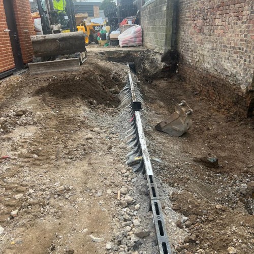 At Walthamstow, we successfully delivered a £1 million project that involved a wide scope of enabling and construction works. The scheme began with site enabling works, followed by the installation of concrete pad foundations to provide a strong and lasting structural base. Our team also completed footpath paving and surfacing, creating safe, durable, and attractive access routes for the site. A major part of the works was the installation of an advanced ACO Qmax 900 drainage system, ensuring effective water management and long-term protection against flooding. Every stage of the project was carried out with precision, combining safety, quality, and efficiency. The client was extremely pleased with the final result, praising both the high standard of workmanship and the smooth delivery of the project.